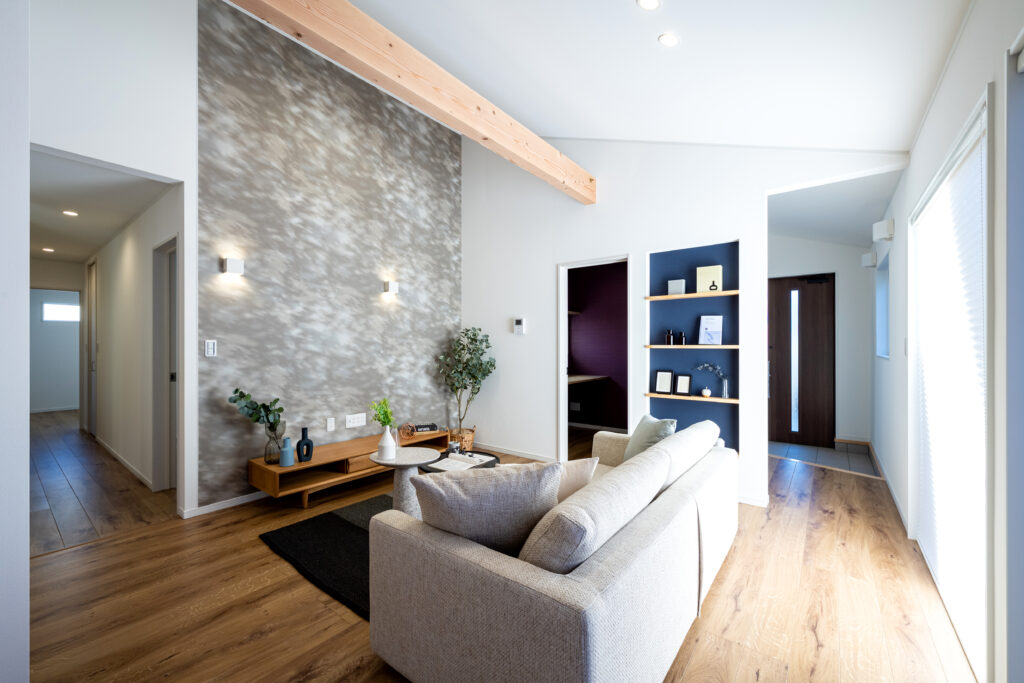 カフェのような28坪の平屋のおうち 新築 玄関先には手洗いがあるので、帰宅後すぐに手洗い・うがいができ清潔にすることができます。 リビングは窓を大きく取り、日差しがたっぷり入り明るく暖かです。化粧梁が斜め天井の空間を演出。アクセントになり、カフェのような雰囲気が感じられます。 収納面では、玄関先にシューズクローク、家族共通で使えるウォークインクローゼット、各部屋にもクローゼットがあり、すっきりと暮らせるようにしました。 また、リモートワークができるように書斎もあり、コンパクトながらたくさんのご希望が詰まったお住まいです。 断熱性・気密性も良く一年中快適にお過ごしいただけます。 物件概要 所在地 行田市 家族構成 親子3人、ネコちゃん 延床面積 95.64㎡(28.93坪) 太陽光搭載 14.5kW 備 考 営業:境野 設計:齋藤 省エネ性能の値 一次エネルギー消費量 41787MJ/ (㎡・年) Q値(熱の逃げにくさ) 1.72W/㎡K UA値(熱の逃げやすさ) 0.34W/㎡K C値(すき間の面積) 0.37c㎡/㎡ ηAH値(冬の日射熱取得量) 1.2 ηAC値(夏の日射熱取得量) 1.3 年間の光熱費の比較 平均的な省エネ住宅 29.6万円 / 年 約39%節約 この住宅 (太陽光非搭載) 18.3万円 / 年 約58%節約 この住宅 (太陽光搭載) 12.5万円 / 年 約39%節約 約58%節約 その他の施工事例 これからをゆったりと過ごせる37坪の平屋 新築 19坪のちょうどいい平屋のおうち 新築 心地のよい光の差し込む”より良い暮らし”のためのおうち 新築 BACK TO LIST
