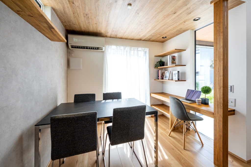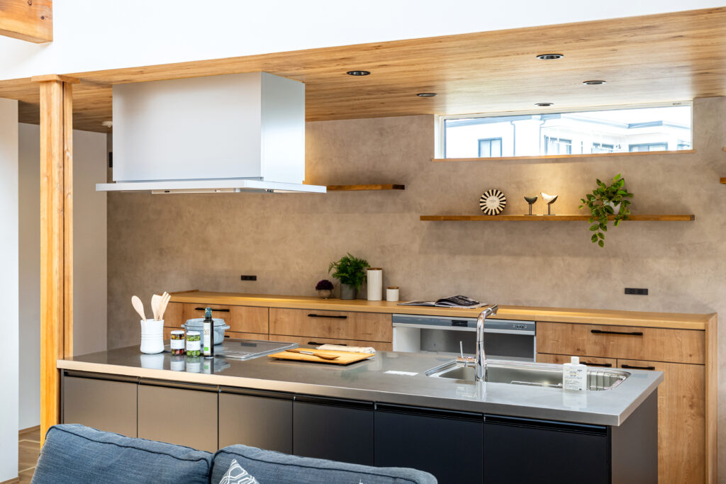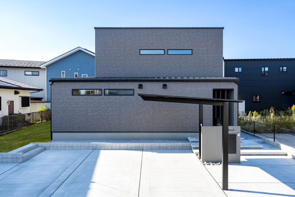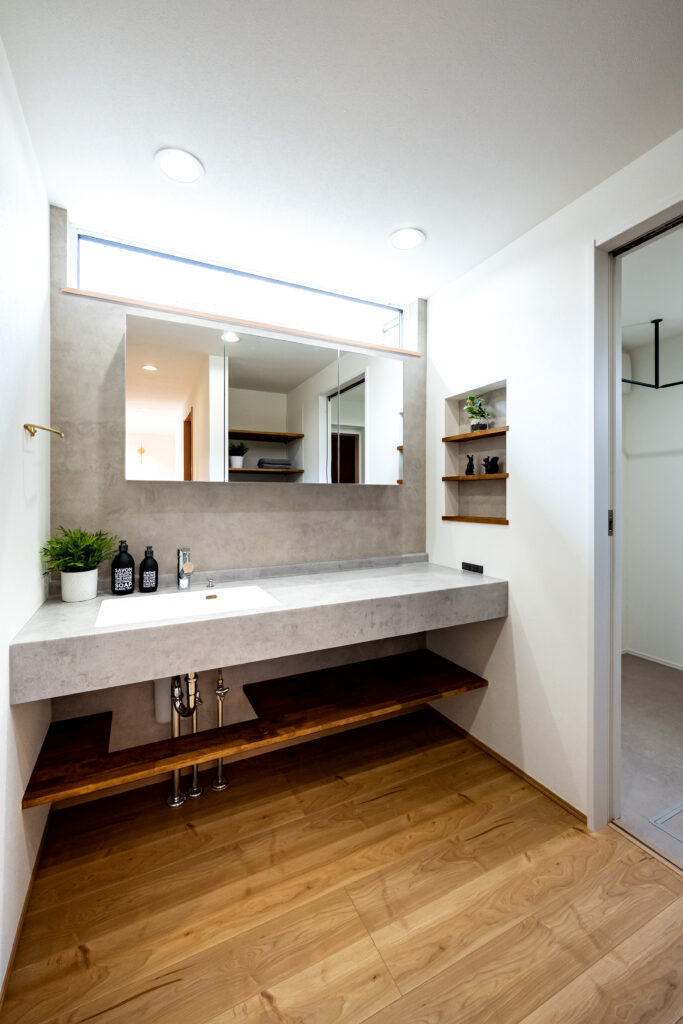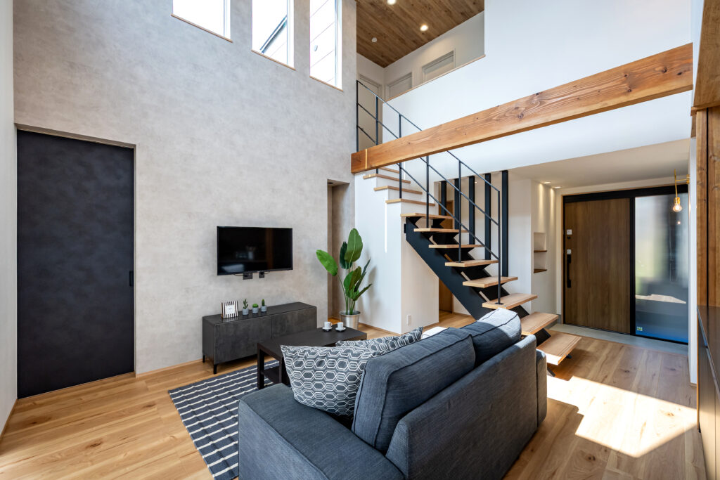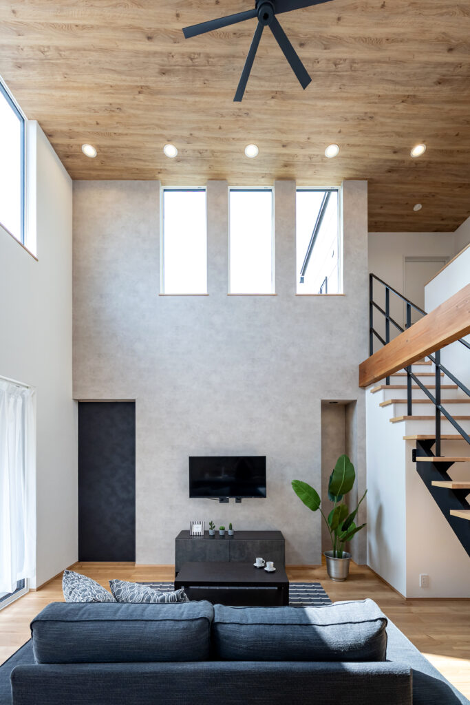光と余白を楽しむ、暮らしが整う家 新築 「広さ」と「心地よさ」を大切にしながら、日々の暮らしがすっきり整う住まいをかたちにしました。 ご家族の理想や暮らし方をひとつひとつ丁寧にヒアリングし、時間をかけて一緒につくり上げた、こだわりの一邸です。 リビングは大きな吹き抜けを設け、高い天井と上部の窓からたっぷりと光が入る、明るく開放的な空間に。 視線の抜けを意識したデザイン階段が、空間に軽やかさと広がりを与えています。 壁掛けテレビの背面には収納を設け、配線を隠すとともに、お子さまのおもちゃなどもすっきり片付けられるようにしています。 玄関はゆとりのある土間スペースとシューズクローゼットを備え、靴や外まわりのものをすっきり収納できる空間に。 リビングへ向かう動線と、キッチン・パントリーへ直行できる動線を分けることで、家族みんなが使いやすく、毎日の家事もスムーズに進むよう工夫しています。 造作で仕上げた洗面スペースは、壁面のニッチや横幅のある鏡を採用し、朝の身支度も家族で並んで使いやすいレイアウトに。 また、鏡の上には窓を設け、自然光が入りやすい明るく清潔感のある空間に仕上げました。 デザイン性に加え、毎日気持ちよく使えることや、お手入れのしやすさにもこだわっています。 随所に収納を計画することで、家具に頼らず「生活感を抑えた暮らし」が叶う住まい。 広がりのある空間と、整った暮らしやすさを兼ね備えた一邸です。 物件概要 所在地 行田市 家族構成 ご夫婦、お子さま1人 延床面積 114.68㎡(34.69坪) 太陽光搭載 6.37kW 備 考 営業:佐藤 設計:大倉 省エネ性能の値 一次エネルギー消費量 53,638MJ/ (㎡・年) Q値(熱の逃げにくさ) 1.68W/㎡K UA値(熱の逃げやすさ) 0.42W/㎡K C値(すき間の面積) 0.39c㎡/㎡ ηAH値(冬の日射熱取得量) 1.4 ηAC値(夏の日射熱取得量) 1.6 年間の光熱費の比較 平均的な省エネ住宅 36.8万円 / 年 約27%節約 この住宅 (太陽光非搭載) 26.8万円 / 年 約53%節約 この住宅 (太陽光搭載) 21.6万円 / 年 約27%節約 約53%節約 その他の施工事例 これからをゆったりと過ごせる37坪の平屋 新築 19坪のちょうどいい平屋のおうち 新築 心地のよい光の差し込む”より良い暮らし”のためのおうち 新築 BACK TO LIST